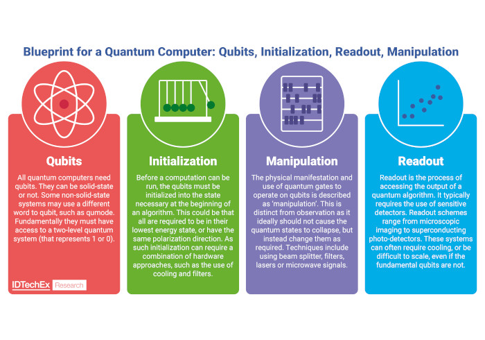 Por otro lado, la sencillez de utilizar métodos de imagen y microscopía establecidos para la lectura es una ventaja insignia de modalidades como las plataformas de diamante, átomo neutro e iones atrapados. Por ejemplo, Hamamatsu dispone de una gama de tubos fotomultiplicadores (PMT) y dispositivos de pares cargados multiplicadores de electrones (EM-CCD) disponibles comercialmente para las comunidades de iones atrapados y átomos neutros, respectivamente. Mientras tanto, la plataforma de diamante que persiguen actores como Quantum Brilliance XeedQ podría utilizar cámaras de semiconductores complementarios de óxido metálico (CMOS) aún más sencillas. La capacidad de estas modalidades para utilizar métodos de imagen ya establecidos para la lectura podría resultar una vez más esencial a la hora de ofrecer una ventaja en escalabilidad frente a sus competidores. Sobre todo porque, para algunas otras modalidades, el «reto de cableado» asociado a la lectura aumenta con el número de qubits, mientras que la obtención de imágenes de todo un conjunto de qubits a la vez es mucho más eficiente.