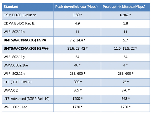 Cuando se lanzó UMTS, no sólo proporció velocidades de datos más rápidas y fiables de hasta 384 kbps, pero se basó en una plataforma mejorada que permitió el uso simultáneo de voz y datos. Mejoras evolutivas a UMTS se han traducido en tasas de datos más altas, con velocidades de hasta 14,4 Mbps inicialmente soportadas por High Speed ??Packet Access (HSPA). Los rátios máximos teóricos de datos aumentaron a 42 Mbps cuando HSPA Evolved (HSPA +) se implementa en la red.