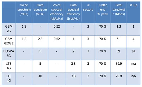 Como aumentan las tasas de datos móviles, se requiere un aumento correspondiente en la capacidad de backhaul móvil. Como se ve en la tabla a continuación, un emplazamiento de celda que lleva sólo voz GSM, necesitaría un ancho de banda típico de aproximadamente 1,3 Mbps. Los requisitos de ancho de banda para un emplazamiento de celda basada en la arquitectura EDGE 2.75G aumentaría a aproximadamente 6 Mbps, 3G requiere alrededor de 21 Mbps, y LTE necesitaría tanto como 80 Mbps. Si un operador móvil tiene más espectro a su disposición, o hace uso de antenas MIMO para aumentar la capacidad, entonces los requisitos de backhaul aumentarían aún más.