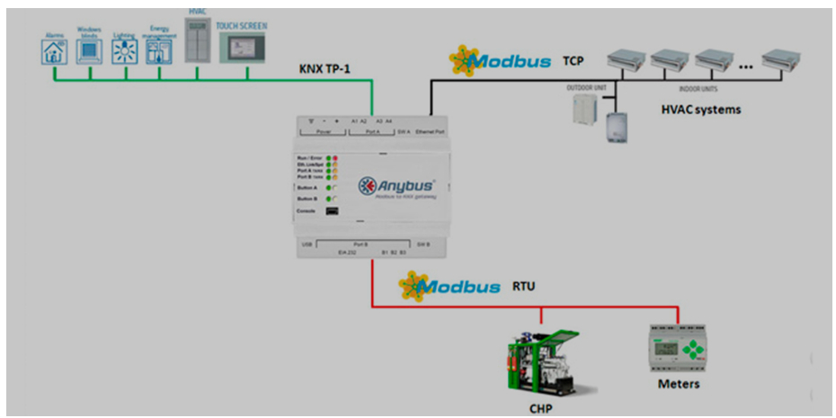 Modbus-RTU-Slaves werden an die serielle Schnittstelle des Gateways angeschlossen, Modbus-TCP-Geräte hingegen an den Ethernet-Port. Auf der KNX-Seite simuliert das Gateway ein KNX-Gerät und verhält sich wie jedes andere Gerät im KNX-System. Zur Integration des Gateways erstellen Sie ein Konfigurationsprojekt mit dem benutzerfreundlichen und leistungsstarken Konfigurationsmanager (MAPS) von Anybus. Anschließend können Sie mit diesem Tool die Inbetriebnahme und Fehlerbehebung durchführen.