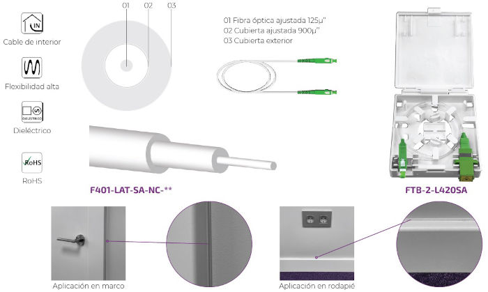 Diese transparente Faser kann an der Fußleiste oder am Türrahmen angebracht werden, wo sie praktisch unmerklich ist und somit die Ästhetik des Hauses respektiert.