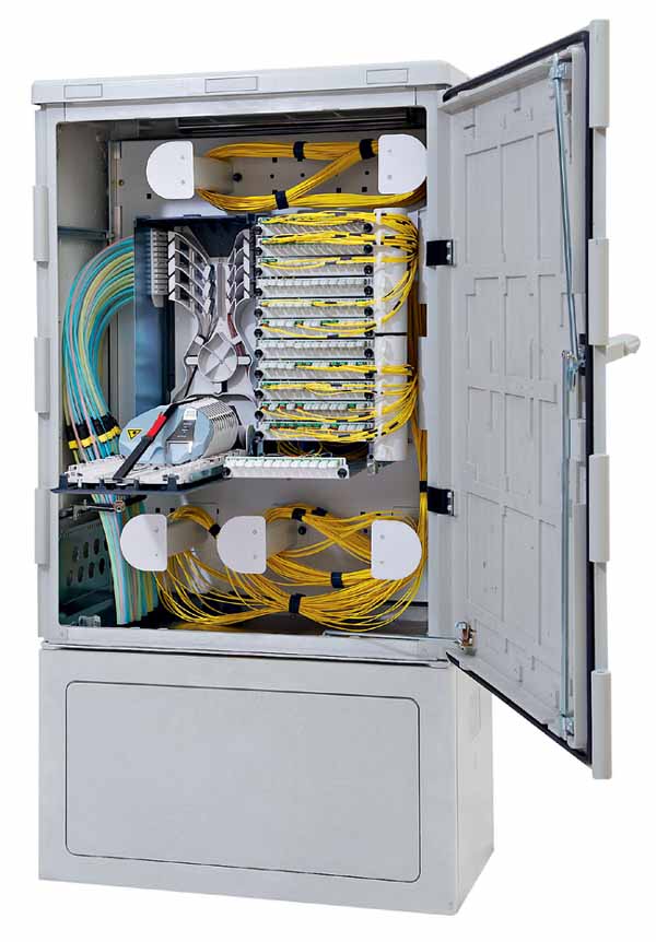 Die nächste Generation der FTTX-Teilnehmerverwaltungssysteme von R&M steht kurz vor der Markteinführung. Mit der Integration der revolutionären neuen ODF-Module in die Serviceschränke (Abbildung 5) hat R&M einen weiteren Meilenstein in der Teilnehmerverwaltung erreicht. Die Installation im Außenbereich war noch nie so zuverlässig, einfach und modular. Die internen Komponenten des Schranks wachsen mit der Anzahl der Teilnehmer – ganz ohne Vorabinvestitionen.
