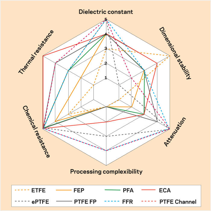 For example, at a thickness of 0.75 mm, the material has a TRI (Relative Thermal Index) of 300°C according to UL 746B. Thanks to its continuous service temperature of 300°C, ECCtreme™ ECA exceeds the previous upper limit of 260°C for conventional perfluoroplastic insulating materials.