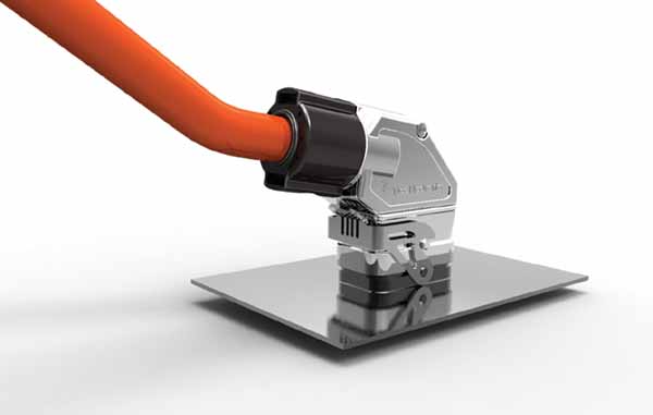 The rectangular Motorman connector is characterized by its very compact design, measuring only 41.5 x 22.3 mm. The capsule has been developed entirely from scratch and is available in metal or plastic versions. The metal capsule is ideal for harsh industrial environments, while the plastic version is very economical and suitable for less demanding environments. The cable enters at a 100° angle, not a right angle, ensuring a good fit between the cable's bend radius and the capsule's geometry.