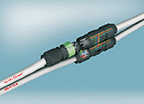 The Quickon H-splitter with manual contact protection is a revolutionary new compact, robust, and quick-connect terminal box concept (Figure 6). The four Quickon connectors are internally interconnected. The housing is made of solid, fiberglass-reinforced polyamide. The H distributor can be used with a main line passing through it, with one or two branches, or as a star distributor with one input and three outputs.