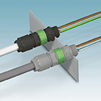 Quickon cable glands from Phoenix Contact's Quickon Power Distribution product family are M25 cable fittings that allow connection from the outside. Their main advantage is that they eliminate the need to open devices (such as drives, lights, fans, pumps, or radiator heaters) to connect the cable. With these cable glands, the load is connected simply by tightening the Quickon nut or, even more easily, with the green Quickon plug (Figure 8).