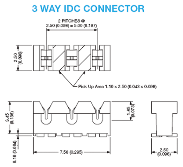 These connectors have 2 or 3 pin contacts, a low profile, and a small footprint. They are surface-mount encapsulated, and the wire is crimped in after the component is soldered to the board.