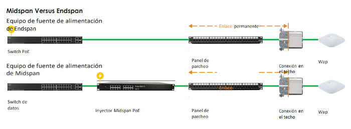 End-spans are essentially Ethernet switches with added PoE circuitry, while mid-spans are placed between the switch and the powered device.