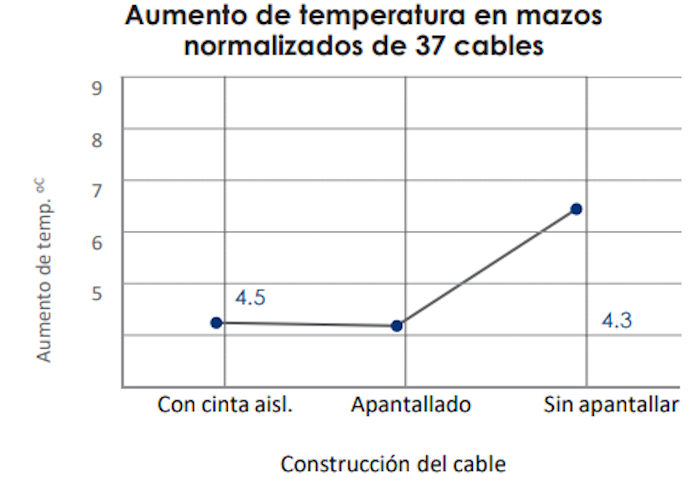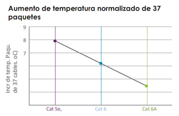 The use of LEVITON cables with a metallic "insulating sheath" surrounding the 4-pair core, or shielded cables (F/UTP), results in average temperature increases more than 2°C lower than standard UTP cable. See Figure 5.