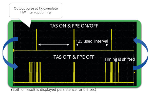 Initial evaluation of the device can be performed using the PCIe reference card, which can be used with an industrial PC running Fedora 27. Toshiba offers a full range of drivers and other utilities, as well as sample applications and TSN demonstrations (Figure 5). These include examples of TAS in operation to allow visualization of anticipation capabilities, and the effect on transmission speed can be analyzed with standard tools such as iPerf.