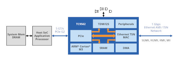 The firmware required for operation is downloaded via PCIe during initialization, which also allows for future updates such as changes or ratifications to the relevant TSN standards (Figure 4). SGMII, RGMII, RMII, and MII interfaces are supported, achieving speeds of 10 Mb/s, 100 Mb/s, and 1000 Mb/s, respectively, as well as SPE T1 physical layers to accommodate the trend toward lighter and simpler cabling.