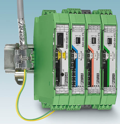Addressing the headend modules and easily mapping the I/O of the add-in modules, as is typical of the Radioline wireless system, is quick and straightforward using the rotary selectors on the front panel. I/O signals can be distributed over an RS-485 bus system without any programming or software configuration.
