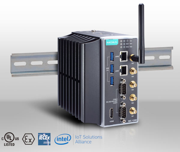 The MC-1220 series of rugged edge computers presented by Moxa features a high-performance Intel® Core™ i7/i5/i3 processor and multiple expansion interfaces that support the addition of hardware accelerators such as VPUs, and support the Intel® OpenVINO™ toolkit for AIoT application development.