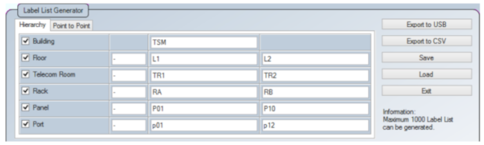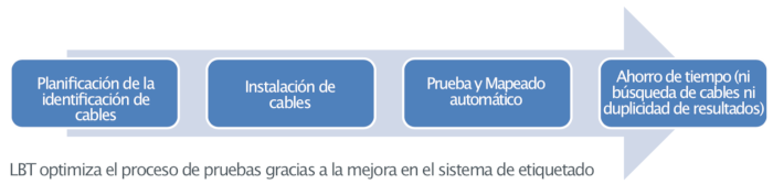List-Based Testing (LBT) is the first labeling system that manages the generation of cable labels in a hierarchical and customized way. The LBT system completely changes how cable labeling is defined by basing it on the selection of labels pre-loaded from a list generated on a PC. That is: