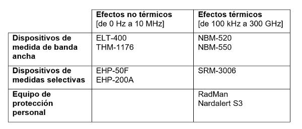 Table: Range of measuring equipment, including powerful Narda software for verifying exposure values, in accordance with Directive 2013/35/EU.