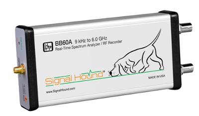 Signal Hound spectrum analyzers are compact and easy to use. The Signal Hound BB60A is used for real-time spectrum monitoring, manufacturing process control, interference detection, extended spectrum signal analysis, intermittent event capture, and general-purpose spectrum analysis.