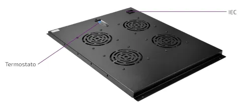 Las dimensiones de los ventiladores son de 120x120x38mm y 50CFM, aunque se pueden suministrar modelos con 90 CFM bajo pedido. Además, los ventiladores tienen la característica de ser de baja sonoridad y se ubican en la carcasa metálica que se adapta al techo, esta carcasa metálica incluye un termostato analógico.