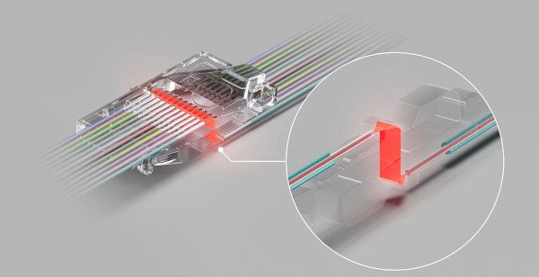 Los conectores EBM® están equipados con un casquillo que puede alojar hasta 12 fibras monomodo o multimodo. Esto permite implementar conexiones multifibra para aplicaciones modernas con altos requisitos de ancho de banda y espacio de instalación limitado.
