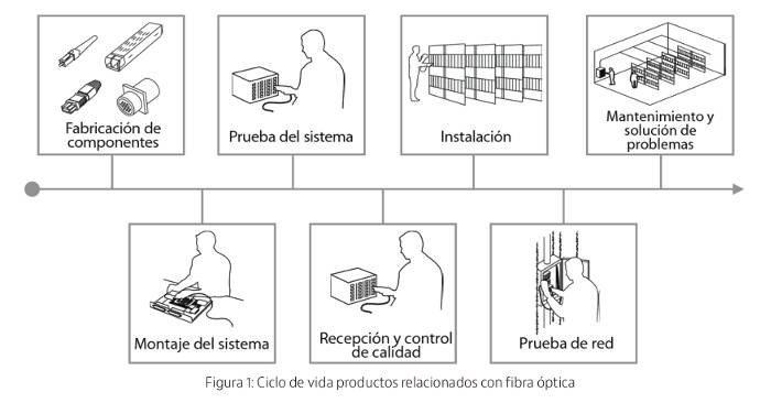 y Como garantía de calidad y rendimiento de la red dentro de una organización. A medida que las distintas etapas del ciclo de vida de los productos relacionados con la fibra óptica se tercerizan a distintos proveedores (tal como se muestra en la Figura 1), esta norma toma una importancia aún mayor ya que asegura un rendimiento optimizado de las densas redes de hoy en día.