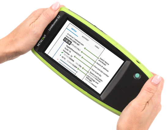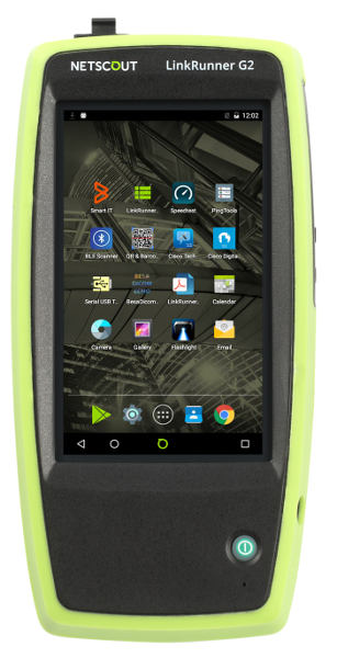 LinkRunner G2, con sus capacidades de Ethernet por cable y el sistema operativo Android reforzado, permite a los profesionales de TI realizar su trabajo de principio a fin. Gracias a la combinación del uso de las aplicaciones móviles específicas del proveedor y el hardware personalizado de LinkRunner, los profesionales de redes ahora pueden ejecutar su flujo de trabajo completo en un único dispositivo. Estos pueden recibir un ticket de problema, revisar documentación, comprobar PoE cargadas y servicios de red, documentar automáticamente los resultados, y configurar y clasificar los dispositivos conectados.