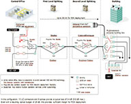 - En ubicaciones de edificios multifamiliares, las soluciones preconectorizadas reducen significativamente la cantidad de equipamiento, el número de empalmes, la cantidad de técnicos necesarios para trabajar y agilizan el proceso de altas notablemente.