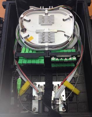 Le nouveau boîtier étanche est doté d'une entrée pour câbles de dérivation de 10 à 17,5 mm de diamètre, de deux sorties pour câbles de 8 à 17,5 mm et de seize sorties supplémentaires pour cordons jusqu'à 4 mm, ainsi que d'un panneau de distribution pouvant accueillir jusqu'à vingt-quatre connecteurs SC.