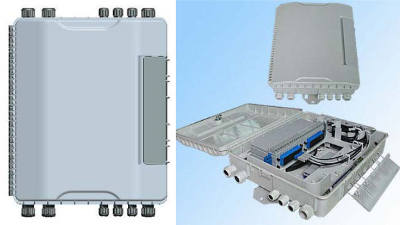 Ces boîtiers, mesurant 530 x 390 x 130 mm et pesant 2,5 kg, disposent de quatre entrées et huit sorties, ainsi que d'un panneau pour 48 connecteurs et jusqu'à 144 épissures. Ils sont disponibles en trois versions :