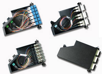 La distribution MPO, quant à elle, peut être utilisée dans les panneaux de brassage et les modules et est compatible avec les câbles plats MPO à 4, 8 ou 12 fibres ou les cordons de brassage, ainsi qu'avec les connecteurs FC/SC/ST/LC ou MTRJ.