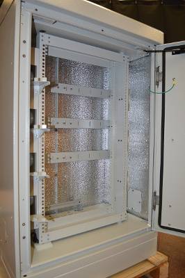 Ces armoires, modèle SRO18, conçues pour accueillir des modules de répartition de signaux optiques, possèdent une structure métallique assurant une protection optimale contre les intempéries et les agressions extérieures (insectes, rongeurs, vandalisme, etc.).