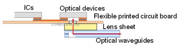 Ce nouveau dispositif repose sur un convertisseur optoélectronique doté d'un circuit imprimé flexible intégrant des composants optiques et des circuits intégrés, permettant ainsi la réalisation d'un émetteur-récepteur optique compact. Par ailleurs, les laboratoires Fujitsu ont également mis au point une lentille de type film performante, empilée sur la face inférieure du circuit imprimé flexible, résolvant ainsi les problèmes mentionnés précédemment.
