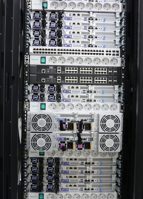 Les nœuds du cluster sont basés sur des plateformes Gigabyte équipées de processeurs AMD Rome. Ces nœuds sont intégrés à un réseau 10 Gigabit connecté à l'extérieur par fibre optique pour la distribution du trafic vers les périphériques connectés, tels que les ordinateurs et les stations de travail. Les commutateurs D-Link DXS-3400, une gamme de commutateurs 10 Gigabit de couche 3 administrables conçus pour les environnements Top of the Rack, campus et centres de données, ont été utilisés à cette fin, ainsi que pour la distribution grâce à leur empilabilité physique et à leur haute densité de ports 10 Gigabit. Plus précisément, deux DXS-3400-24TC . Dans un environnement réseau exigeant comme celui d'un cluster de calcul, il était essentiel de disposer de commutateurs réseau haut de gamme dotés de capacités de commutation de couche 3, notamment en raison de l'intégration du routage au sein même des commutateurs. Ceci a permis de réduire les goulots d'étranglement qu'un routeur classique, conçu pour un trafic 20/80 Mbps, aurait pu engendrer. Un tel routeur force généralement la majeure partie du trafic à traverser les limites des sous-réseaux, un scénario courant dans les fermes de serveurs hautes performances ou les systèmes en cluster où tous les utilisateurs doivent accéder aux ressources depuis leurs sous-réseaux respectifs. Grâce à des fonctionnalités telles que le routage inter-VLAN, l'empilage VRRP, l'Ethernet sans perte (DCB) pour une latence ultra-faible, la commutation de protection en anneau Ethernet (ERPS) et la gestion des ressources de commutation (SRM), les commutateurs D-Link DXS-3400-24TC ont garanti les performances nécessaires à l'accès externe au cluster de calcul. La redondance étant également un facteur clé, le D-Link DXS-3400 est équipé de ventilateurs et d'alimentations remplaçables à chaud, et permet l'empilage d'unités (jusqu'à 4 commutateurs) pour une redondance accrue. Son interface de gestion offre une interface web et un accès console via l'interface de ligne de commande standard (CLI complète).