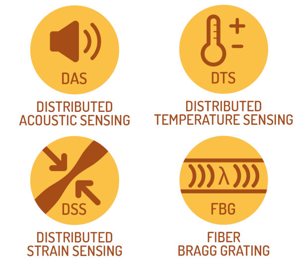 • Technologie DTS avec capteur à fibre optique distribué pour la mesure de température : détection d'incendies dans les tunnels, détection de fuites dans les gazoducs sous pression, contrôle industriel (fermentation dans la production de vin et de bière), surveillance de l'intégrité structurelle des paliers de convoyeurs dans les mines, contrôle de la chaîne du froid dans les centres logistiques et mesure de température dans les entrepôts pharmaceutiques, les centres de données et les lignes électriques à haute tension (surcharges).