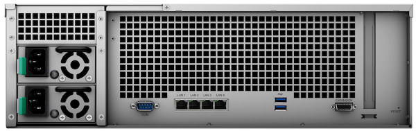 Le RS2818RP+ est le premier serveur NAS rackable 3U RackStation de Synology de la série Plus, prenant en charge jusqu'à 16 disques pour une capacité brute de 192 To. Sa capacité de stockage peut être étendue à 336 To grâce à l'unité d'extension RX1217(RP), permettant ainsi une augmentation de volume sans interruption de fonctionnement.