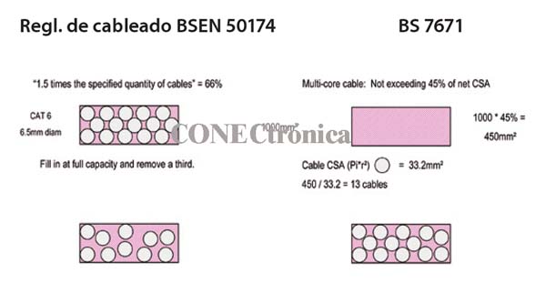 Los Reglamentos de cableado del Reino Unido BS/EN50174 y BS7671 ofrecen cálculos diferentes para determinar la capacidad. A efectos de coherencia, los instaladores de cableado deberían observar la norma BS/EN 50174.