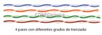 Cada uno de los cuatro pares presenta un grado diferente de trenzado, por lo que la longitud es diferente.