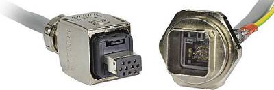El conector de señal PushPull de HARTING transmite corrientes nominales de 5 A sobre 10 contactos con secciones de cable de hasta 0,75 mm². Para garantizar la inmunidad a las interferencias de CEM,los aislantes de contactos están totalmente apantallados como los conectores de datos RJ45 y es posible conectar cables apantallados. El bloqueo PushPull garantiza una inserción de contactos fiable e intuitiva. Una señal audible (clic) indica que el bloqueo es correcto.