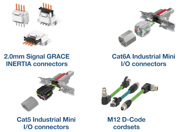 • Los conectores de señal GRACE INERTIA de 2,0 mm de TE ofrecen un diseño compacto y pequeño, una tensión nominal de 50 VCA, y de 2 a 10 posiciones. Estos conectores presentan un mecanismo de bloqueo por inercia que ayuda a prevenir las desconexiones inesperadas debidas al acoplamiento inadecuado, dos opciones de modulación y color, y accesorios opcionales de aseguramiento de posición de terminales (TPA).