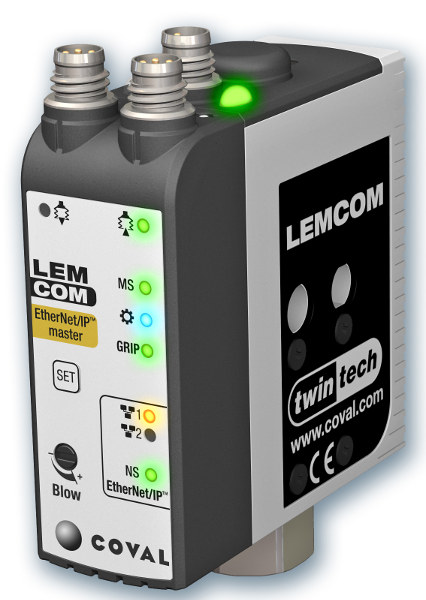Tecnología del ahorro energético El LEMCOM es una continuación de la gama de bombas inteligentes de vacío de COVAL. Integra las tecnologías COVAL de ahorro energético ASR (autorregulador de ahorro de aire) y ASC (control de ahorro de aire) que permiten obtener hasta un 90% de ahorro energético. Entre las nuevas funciones de comunicaciones están el entorno próximo y el lejano que permiten al LEMCOM ampliar aún más el rendimiento, la sencillez y el ahorro energético.