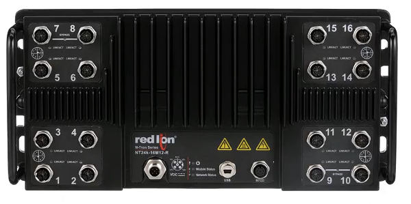 Garma Electrónica presenta los switches gestionados de la serie NT24k-16M12 de la casa Red Lion. Estos switches disponen de 16 puertos gigabit cobre M12 y carcasa con calificación IP67 resistente a polvo y agua.