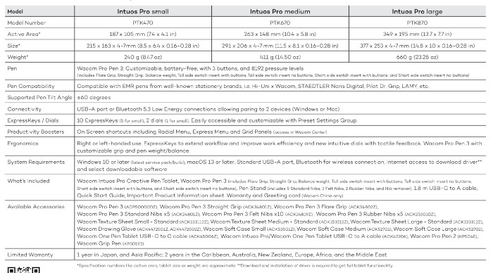 La nueva Wacom Intuos Pro estará disponible en la tienda electrónica Wacom y en distribuidores seleccionados a finales de marzo. El precio de los tamaños será de EUR 269,99 para el pequeño, EUR 399,99 para el mediano y EUR 549,99 para el grande.