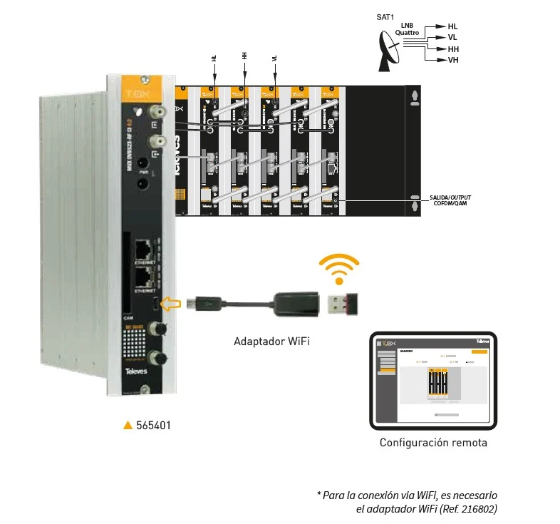 Hay varios factores por los que destaca el nuevo transmodulador de cabecera, principalmente por permitir la selección de la modulación de salida, para transmisión terrestre (COFDM) o por cable (QAM), que se puede realizar a través de su nuevo interfaz web accesible desde cualquier dispositivo, ya sea a través de una conexión Ethernet local, o mediante una red WiFi.