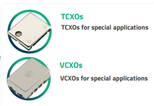 - Osciladores controlados por horno altamente útiles para aplicaciones en centros de datos, redes ópticas, uso militar y comunicaciones. Con estos dispositivos conseguimos que el cristal de Quarzo siempre esté a la misma temperatura haciendo que dé una frecuencia que no depende de la temperatura ambiente, siendo así muy estable.