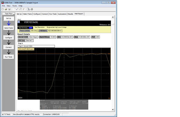 Un paquete de software completo para la realización de pruebas conforme a un estándar de comunicación de datos debería producir datos de una forma fácilmente legible, como se muestra en el ejemplo siguiente de la figura 2. Un informe HTML que incluya capturas de pantalla, si procede, de todas las pruebas ejecutadas con información de margen/aprobado/suspenso genera un gran valor para el cliente a la hora de compartirla con sus propios equipos de ingeniería, así como con sus clientes.