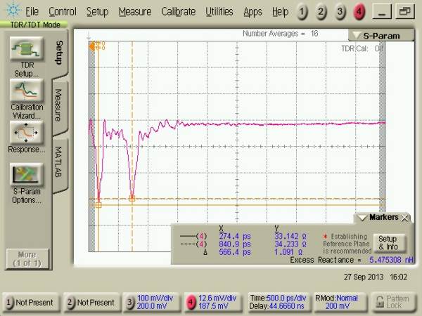 Esto da lugar a otra técnica de medida procedente del mundo de las microondas que está cobrando cada vez mayor importancia en las comunicaciones digitales. Es fundamental ser capaces de determinar cómo viaja una señal desde el transmisor hasta el receptor pasando por el canal y si hay alguna señal que se refleje en sentido inverso desde el receptor. Se producirá un reflejo cada vez que haya un cambio en la impedancia de la trayectoria de la señal. Si una línea de transmisión tiene una impedancia característica de 50 Ω y el receptor tiene una impedancia de 60 Ω, se reflejará alrededor de un 9% de la tensión que llegue al receptor. También pueden producirse reflejos a lo largo del canal. Los cambios en la anchura de la traza, provocados por orificios y conexiones, cambios dieléctricos o cualquier cosa susceptible de ocasionar un cambio en la impedancia, se traducirán en un reflejo de la señal.