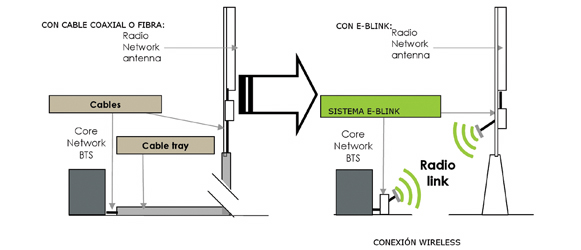 Cubrir las demandas cada vez mayores del tráfico de comunicación representa un desafío importante en las redes móviles, pues hay que hacerle frente con requisitos de densificación complejos y costosos. En estaciones base, los cables coaxiales instalados típicamente entre las antenas y sus equipos de radio mantienen limitaciones significativas al crecimiento y la mejora de redes; debido a su gran impacto en los edificios y las estructuras, los cables no sólo limitan la evolución de las redes existentes, también desechan muchos nuevos sites potenciales. La línea de productos principal de E-Blink, EB1, es un sistema revolucionario que elimina la necesidad de cables coaxiales o la fibra óptica de corto alcance en estaciones base.