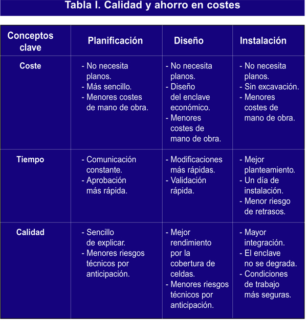 En las Tablas I, II y III se expresan el conjunto de ventajas que aporta el sistema EB1.